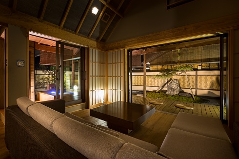 広さ100平米に及び、天井高く開放感あるリビングにツインベッドルーム、しっとりと和の趣で落ち着きのある和室10畳からなります。●定員6名